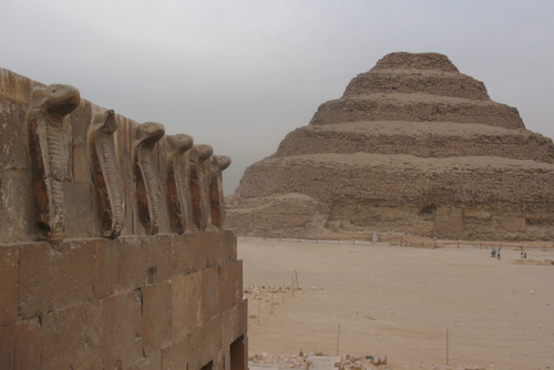 Saqqara, also spelled Sakkara or Saccara in English, is a vast, ancient burial ground in Egypt, serving as the necropolis for the Ancient Egyptian capital, Memphis. Saqqara features numerous pyramids, including the world famous Step pyramid of Djoser, sometimes referred to as the Step Tomb due to its rectangular base, as well as a number of mastabas (Arabic word meaning 'bench'). Located some 30 km (19 mi) south of modern-day Cairo, Saqqara covers an area of around 7 by 1.5 km (4.35 by 0.93 mi).