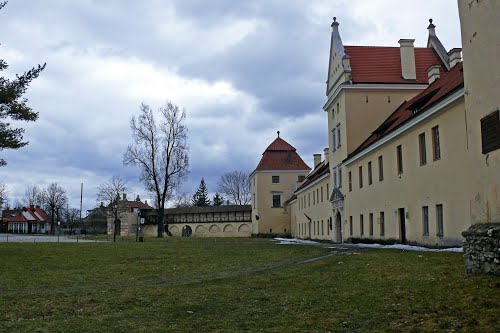 The Zhovkva Castle occupies the principal square of the town of Zhovkva in Ukraine. It was founded by Polish Hetman Stanislaw Zolkiewski as his fortified residence. Construction began in 1594 and was mostly completed in 1606.