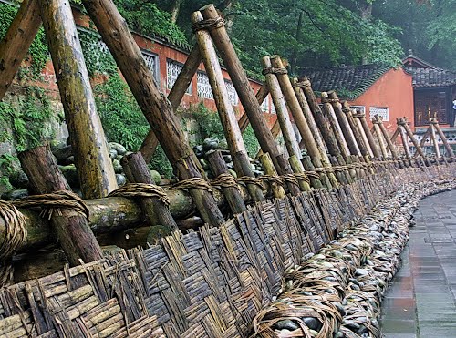During the Warring States period, people who lived along the banks of the Min River were plagued by annual flooding. Qin governor Li Bing investigated the problem and discovered that the river was swelled by fast flowing spring melt-water from the local mountains that burst the banks when it reached the slow moving and heavily silted stretch below.