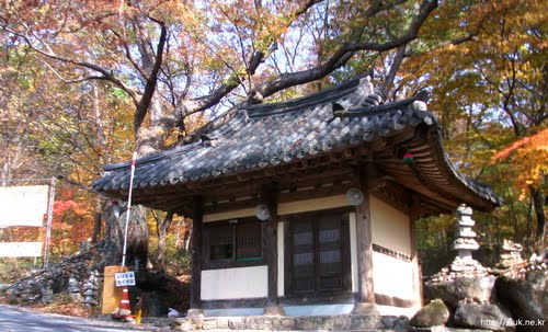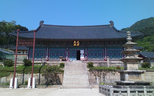 The main hall, Daejeokkwangjeon, is unusual because it is dedicated to Vairocana where most other Korean temples house Shakyamuni in their main halls.