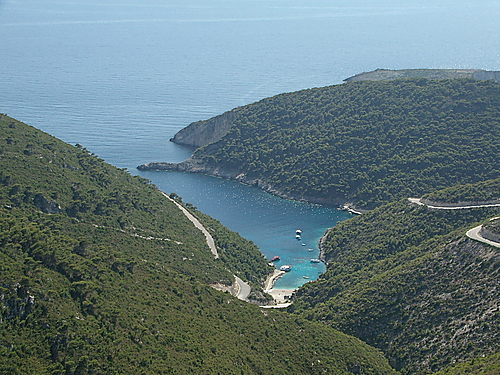 There are two coves in the bay but most visit the main one at the head of the bay, well sheltered by the pine-carpeted limestone cliffs that cut out a natural harbour and by the the uninhabited islet of Agios Ioannis at the mouth of the bay.