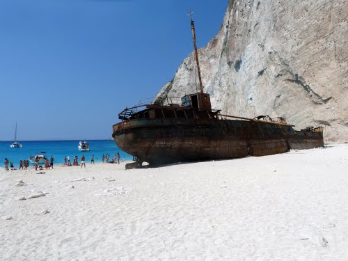 The Panagiotis is a picturesque shipwreck lying in the white sands of an exposed cove on the coast of Zakynthos (Zante), which is among the southernmost of the Ionian Islands of Greece. Navagio ("Shipwreck"), the spot where she lies, is a tourist attraction on the north-western side of the island, with thousands of visitors each year.
