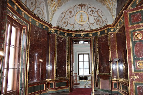 The Catherine Palace is a Rococo palace located in the town of Tsarskoye Selo, 30 km south of St. Petersburg, Russia. It was the summer residence of the Russian tsars.