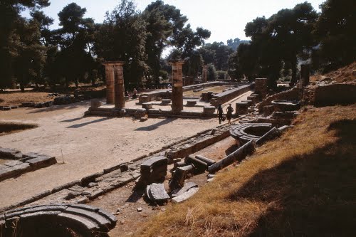Olympia, a sanctuary of ancient Greece in Elis on the Peloponnese peninsula, is known for having been the site of the Olympic Games in classical times.
